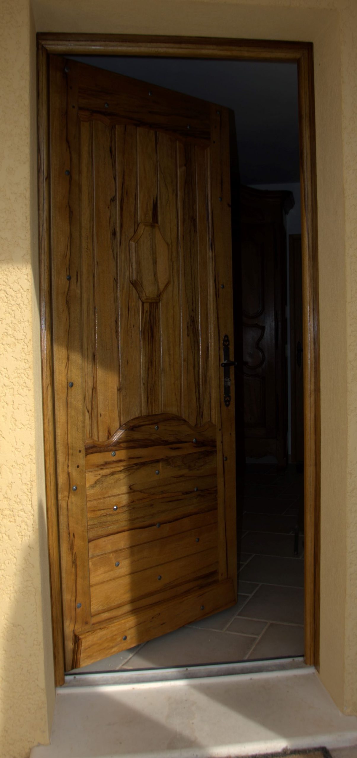 Une porte d’entrée en bois exposée aux intempéries doit être entretenue. Au fil des années, celle-ci subit des dégradations dû au climat, exposition plein soleil etc… Il faut donc la rénover régulièrement pour garder son aspect naturel. Dans notre cas, cette porte a travaillé après avoir été posée. Par le fait, cela demande une rénovation complète y compris son encadrement. Cette porte d’entrée en fraké (bois africain) en a fait l’usage. Cependant, il faut quelques jours de travail.