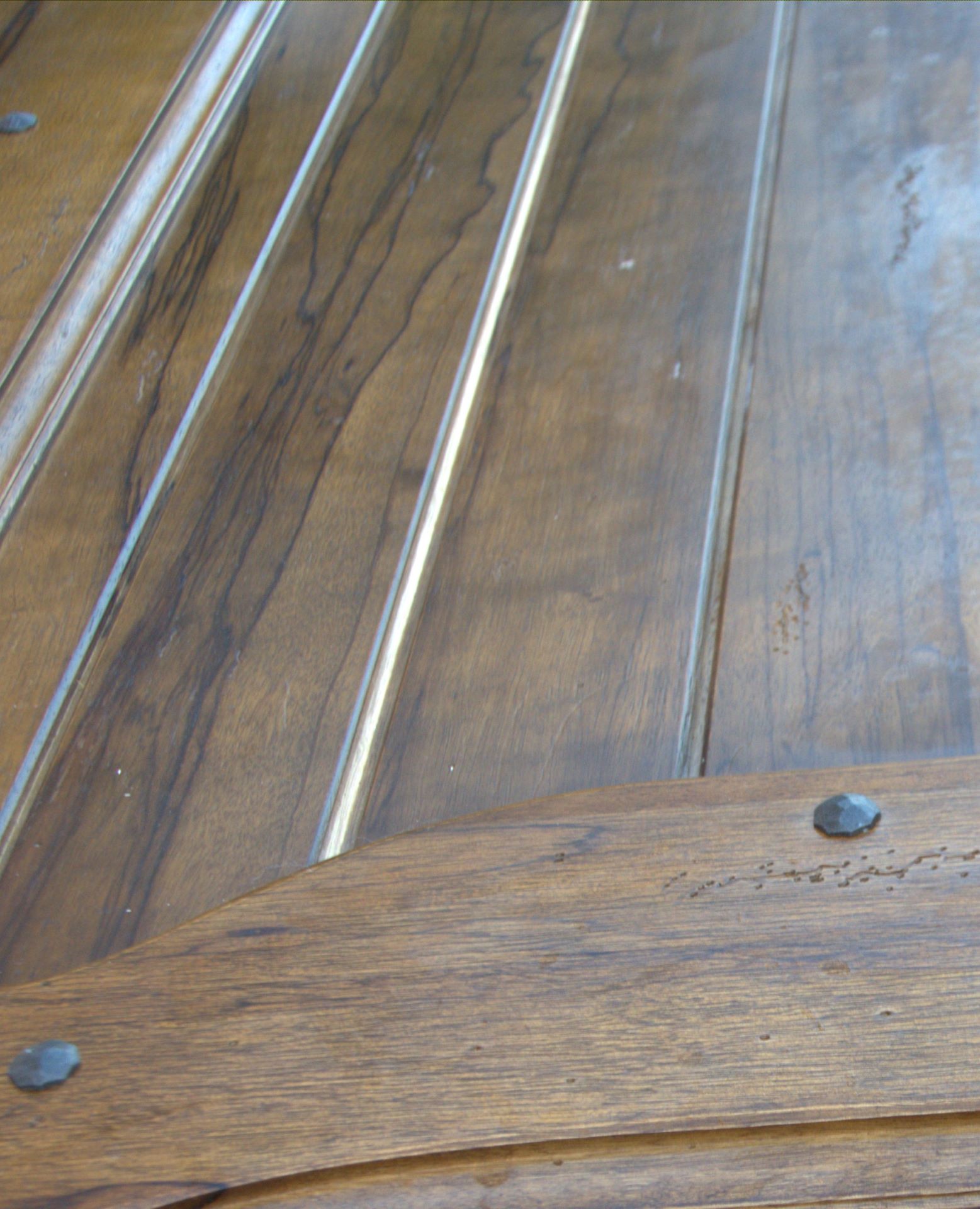 La lasure est une protection la plus adaptée. De plus, Elle fait respirer le bois et met en valeur le veinage. Deux couches minimum sont nécessaires. Séchage entre chaque couche, égrainage pour un rendu lisse au touché. Puis, remontage de la porte.