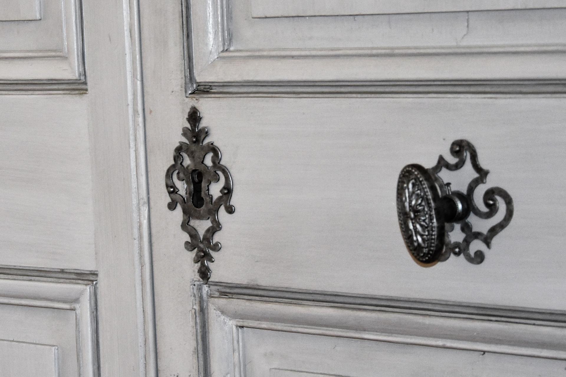 Pour une belle finition, nous avons accentué la patine sur les moulures et patiné la quincaillerie. Les ombres et lumières vont jouer un rôle très important pour cette belle porte. Regardez les photos, elles parlent d’elles mêmes.